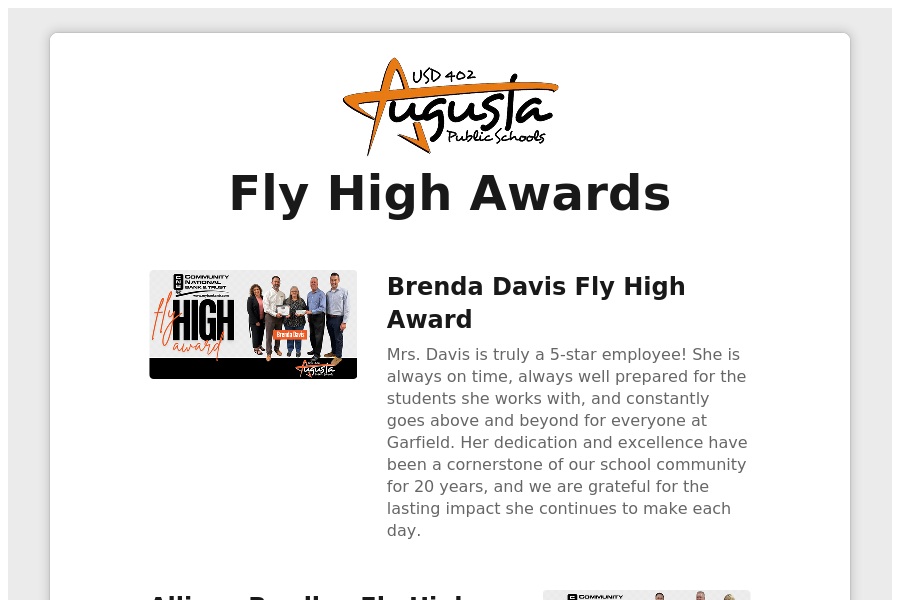 High Award Mrs. Davis is truly a 5-star employee! She is always